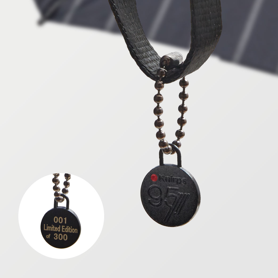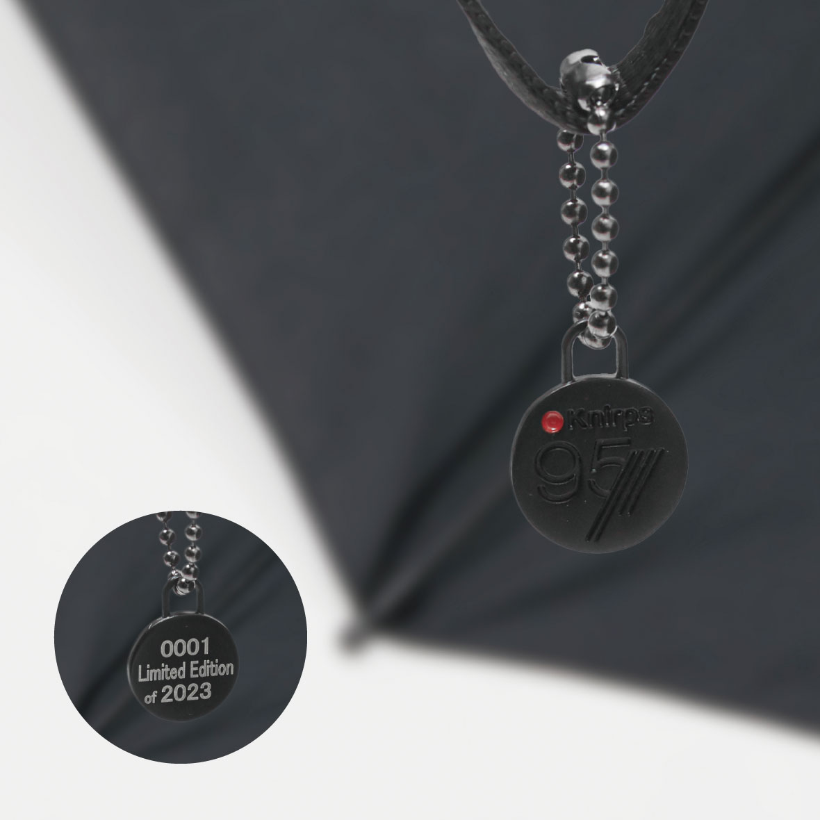 クニルプスのアイコンモデルT.220 Blackの95周年特別仕様です。天蓋と傘ケースに、クニルプスの傘パーツをイメージしたグレーカラーの記念ロゴが入っています。シリアルナンバープレート付き、スペシャルギフトボックス入りです。アニバーサリーイヤーにちなんだ2023本の限定販売です。「クニルプス95年の証」を是非お楽しみください。