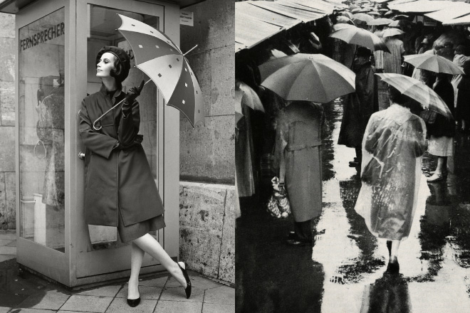 Knirps はマーケティング広告戦略においても先駆者でした。革新的なKnirps 製品と次々に繰り広げられる新しい宣伝広告が実を結び、雨の季節だけでなく一年を通して人々に愛されるブランドへ急成長してゆきました。1950 年代に入るとドイツの天気予報では雨が降る日を“Knirps Weather(クニルプスウエザー)”と呼びました。
