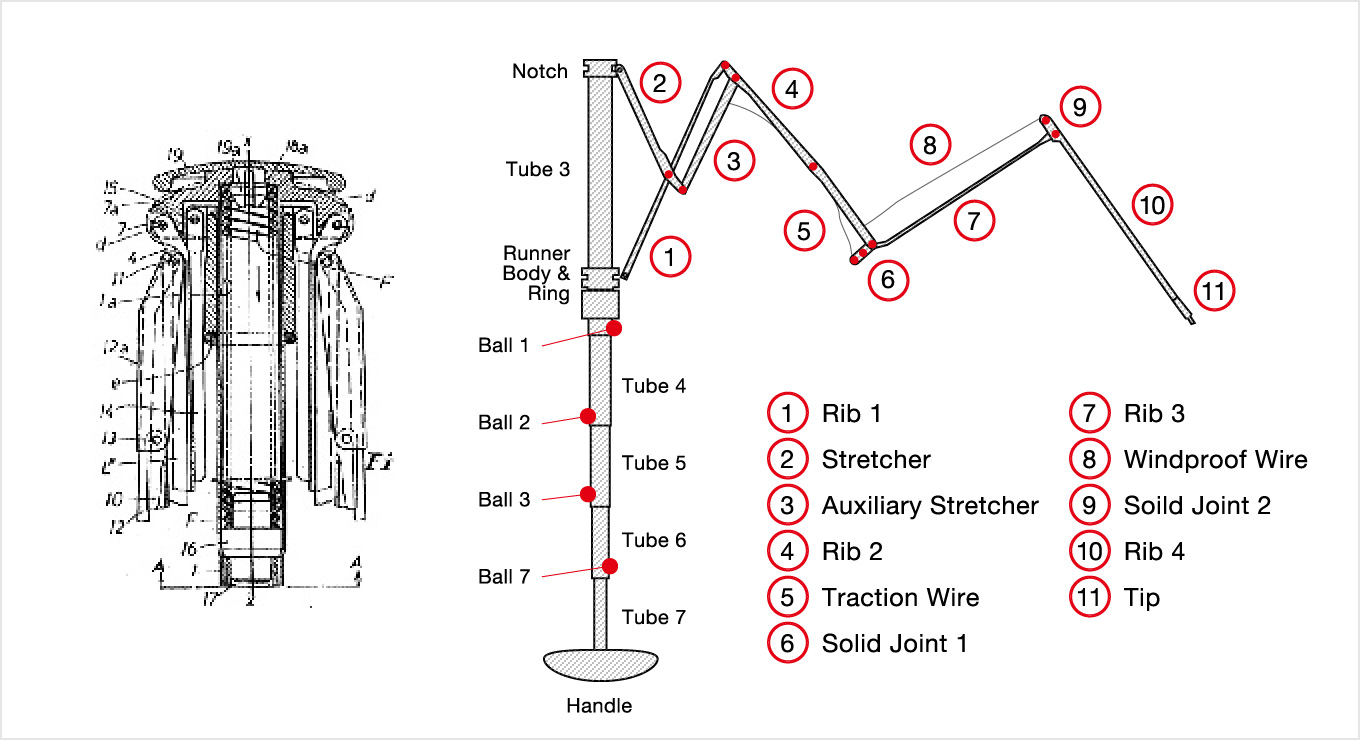 - 90年以上にわたり傘の技術革新を行ってきた過程で、数多くのパテントを取得してきました。